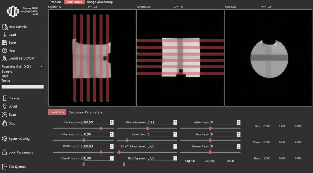 Low-field NMR instruments consist of six main components: industrial computer, spectrometer system, radiofrequency unit, gradient unit, magnet cabinet, and temperature control unit. According to the tasks, the system is composed of five main components: industrial computer, radiofrequency system, gradient system, magnet, and temperature system. The industrial computer receives operator commands, generating control signals through software that coordinates the spectrometer system components. It also handles data processing, storage, image reconstruction, and display tasks. The radiofrequency system is responsible for transmitting radiofrequency pulses and receiving sampled signals. The gradient system generates gradient magnetic fields, and the magnet provides a uniform, stable primary magnetic field. The temperature system manages temperature control in the magnet cabinet.