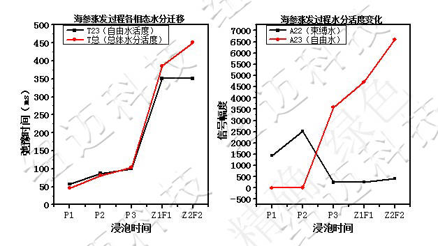 During early soaking, external water enters the sea cucumber and becomes intracellular water, increasing the bound water (A22) content. As soaking continues, the internal structure expands and A22 gradually migrates to free water (A23). The overall water activity in the sea cucumber increases as rehydration progresses.