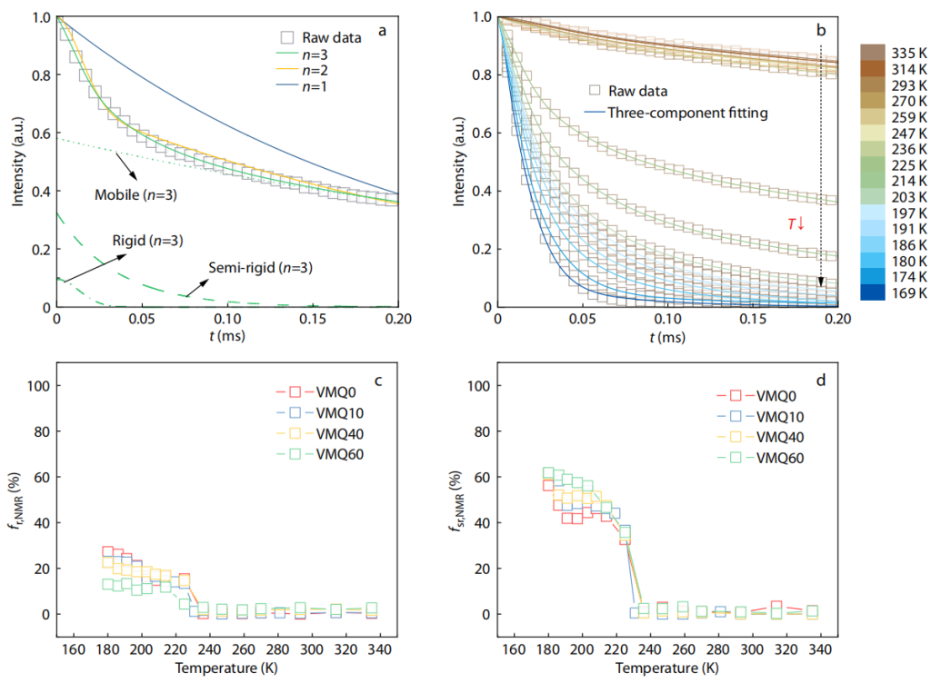 In the modification of silicone-based elastomers, the incorporation of fillers is essential to enhance freeze resistance. However, the addition of nanoscale fillers significantly alters the polymer’s structure, dynamics, interaction strength, thermal behavior, and overall performance. Low-field NMR technology enables the evaluation of cold resistance by analysing parameters such as transverse relaxation time (T2) and the relative fractions of free chains and rigid chains as temperature changes.