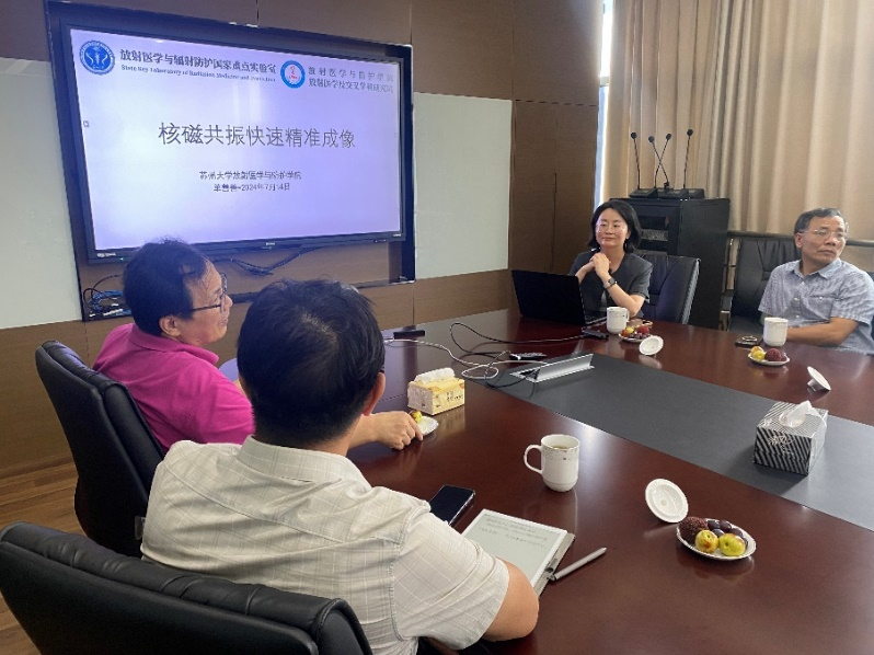 In addition to Professor Liu Feng from the University of Queensland, invited guests included Associate Professors Shan Shan Dan and Chunyi Liu from Soochow University, Researcher Zhi Hua Ren from ShanghaiTech University, and Researcher Yu Jiang from the Shanghai Nuclear Magnetic Resonance Key Laboratory at East China Normal University. The group engaged in in-depth discussions on the development of imaging technologies, such as magnets, RF, and gradient design, under the background of nuclear magnetic technology and the emerging new production capabilities. They also explored the integration of these technologies with cutting-edge digital technologies like artificial intelligence and big data, while discussing future collaboration opportunities for Newmai with top global universities on academic-industrial integration.