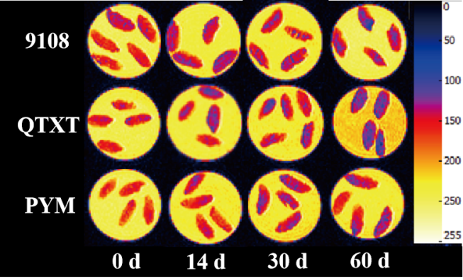 4. Long-term stored rice exhibited uneven internal moisture distribution.