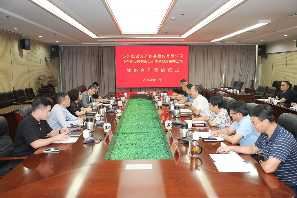 On the afternoon of September 27, New Mai Analytical and Sinopec Jingwei Co., Ltd. successfully signed a strategic cooperation agreement with Shengli Geological Logging Company (referred to as Shengli Geological Logging). Zhao Jianyong, Manager of Shengli Geological Logging, and Li Xianghong, General Manager of New Mai Analytical, attended and witnessed this important moment. Zhang Duowen, Senior Expert and Deputy Manager of Shengli Geological Logging, and Zhang Yingli, Vice General Manager of New Mai Analytical, signed the agreement on behalf of their respective companies, marking the formal establishment of a strategic partnership between the two parties.