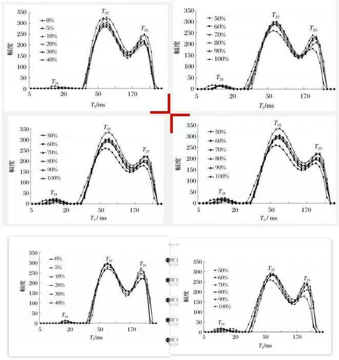 To verify the persistence of the T21 peak after adulteration, rice bran oil was blended into each of the three edible oils at varying concentrations (0% to 100%). As shown in Figure 2, increasing the proportion of rice bran oil leads to noticeable shifts in relaxation peaks. While T22 and T23 changes are minimal, the T21 peak becomes increasingly prominent as adulteration increases—confirming its reliability as a qualitative indicator.