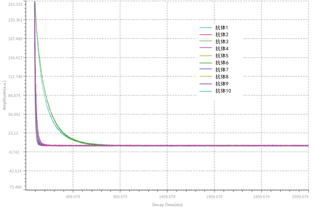 By measuring T2 relaxation times for 10 monoclonal antibody samples across two batches, samples can be rapidly screened and categorised, clearly differentiating between antibodies.