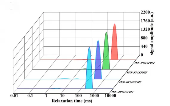 LF-NMR data demonstrate that SPIH forms hydrogen bonds and physical networks with different starch crystal types, reducing free water content and mobility, thereby inhibiting starch digestion. This technology provides dynamic evidence for the “protein hydrolysate–starch–water” interaction mechanism, supporting SPIH’s potential as a low-GI food additive.