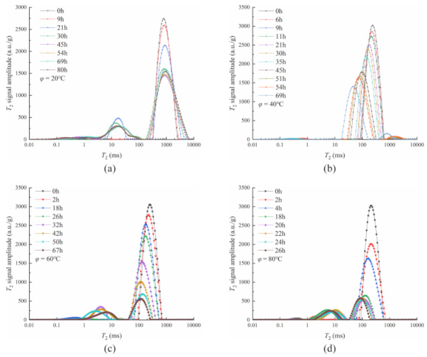Figure 2: T2 distributions under different temperatures