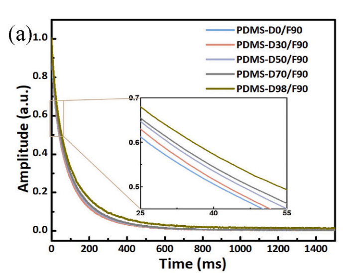 The team used the VTMR20-010V-I low-field NMR system from Niumag Analytical Instruments to measure the T2 relaxation times of polymers with different levels of pendent chains. As shown in Figure 2, the T2 relaxation time increases with pendent chain content, indicating that more pendent chains enhance polymer chain flexibility.