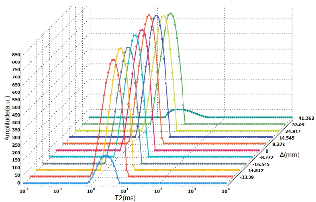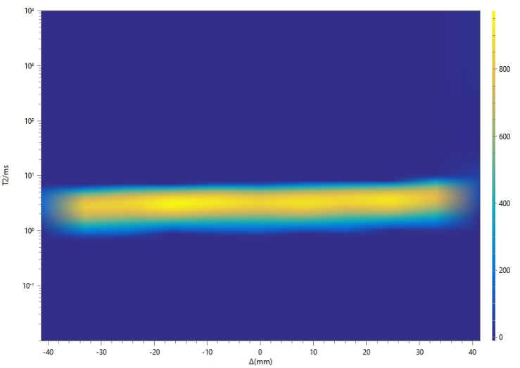 Unlike CPMG sequences that collect data from the entire sample, the constant-gradient selective-layer sequence applies a layer-selection gradient field combined with selective RF pulses to acquire layered CPMG data along the sample axis. The figure above illustrates the pulse sequence of the constant-gradient selective-layer method. During testing, NMR signals from different positions along the sample experience the gradient field generated by the gradient coils, providing position-specific information. By mathematical decoding, the NMR signals are assigned to each layer. One-dimensional NMR localisation includes both layer positioning and thickness selection, as demonstrated below.