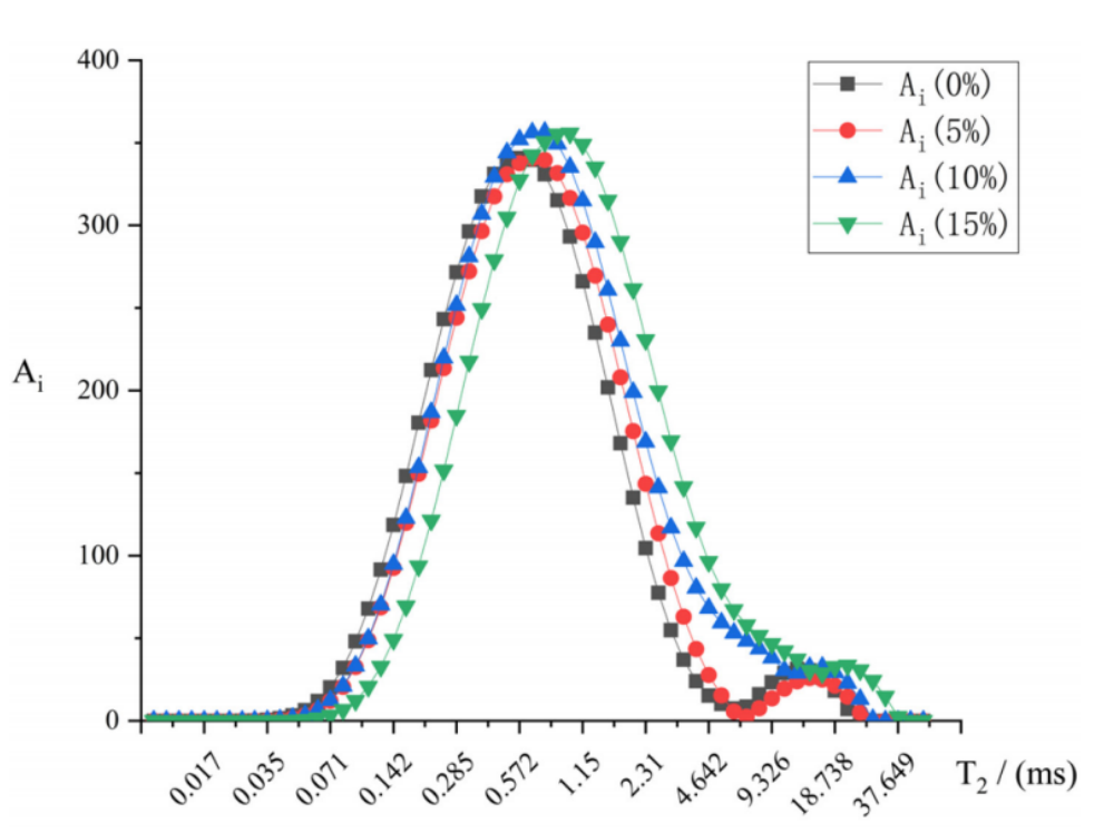 Figure 3: T2 relaxation inversion curves under different strain levels