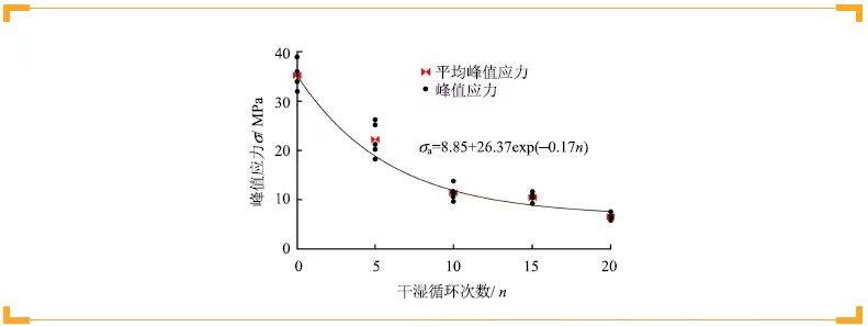 Figure 8. Relationship curve between peak stress and cycle number