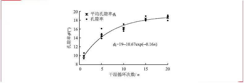 Figure 3. Relationship curve between porosity and wetting–drying cycles