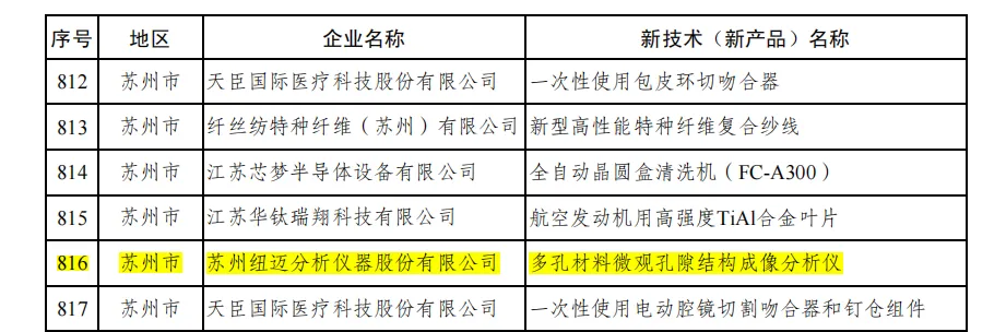 Recently, the Jiangsu Provincial Department of Industry and Information Technology issued the “Catalogue of Key New Technologies and Products for Promotion and Application in Jiangsu Province (2024).” New Mai Analytical’s “Porous Material Microstructure Imaging Analyzer” successfully passed the evaluation of new products and was included in the “Catalogue of Key New Technologies and Products for Promotion and Application.”