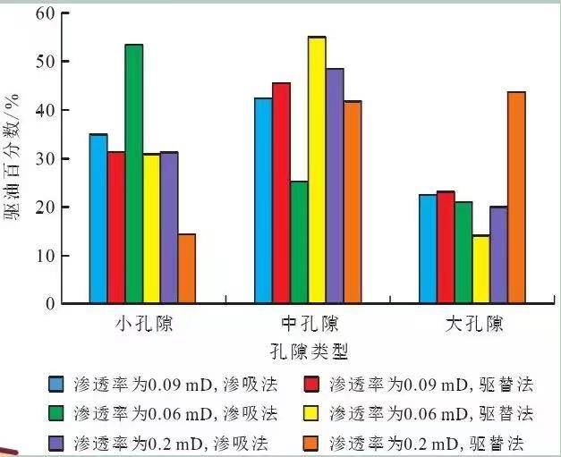Experimental results from six core samples of Chang-8 formation show that displacement yields range from 32.30% to 39.32%, while imbibition yields range from 9.60% to 19.49%. Although displacement yields are higher, the pressure gradients applied in laboratory displacement experiments exceed those encountered in the field. Excessive injection pressures can challenge equipment and operational procedures. Therefore, in field applications, it is essential to leverage the complementary effects of imbibition and displacement.