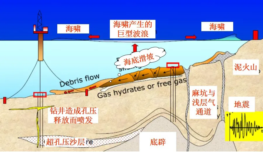 Specifically, hydrate extraction may trigger four types of geological hazards: