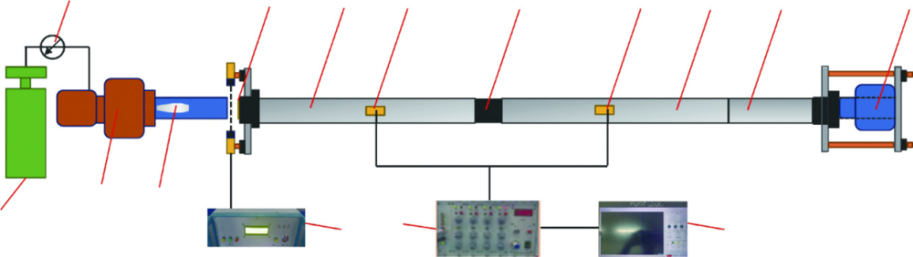 Before the test, a trial impact was conducted to determine the impact air pressure at 0.30 MPa. Strain gauges were attached to the incident and transmission rods to capture the pulse signals generated by the vibration impact. Dynamic strain gauges were used to collect and record the signals, which were used to assess the performance of the test system.