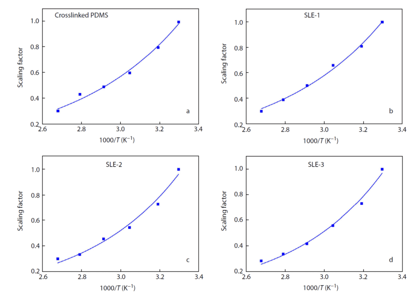 Using the Arrhenius equation, the authors fitted the shift factors used in superposition, revealing that the apparent activation energy increased with PBS content. This indicates that PBS hindered the Rouse relaxation of PDMS chains.
