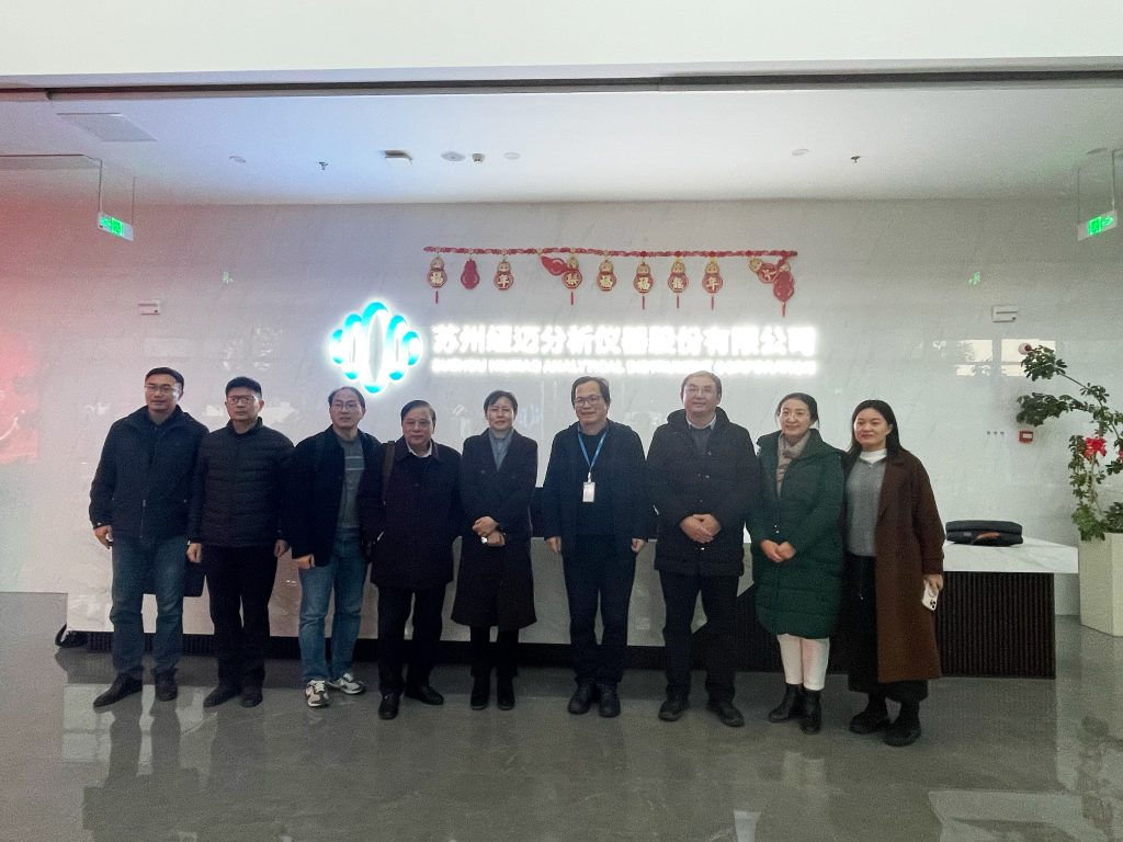 On January 15, President Gu Juping of Suzhou University of Science and Technology, along with his team, visited New Mai Analytical for a tour and research. They were accompanied by Yang Peiqiang, Chairman of New Mai Analytical, and Professor Yan Jun, Director of the Postdoctoral Research Station at New Mai Analytical.