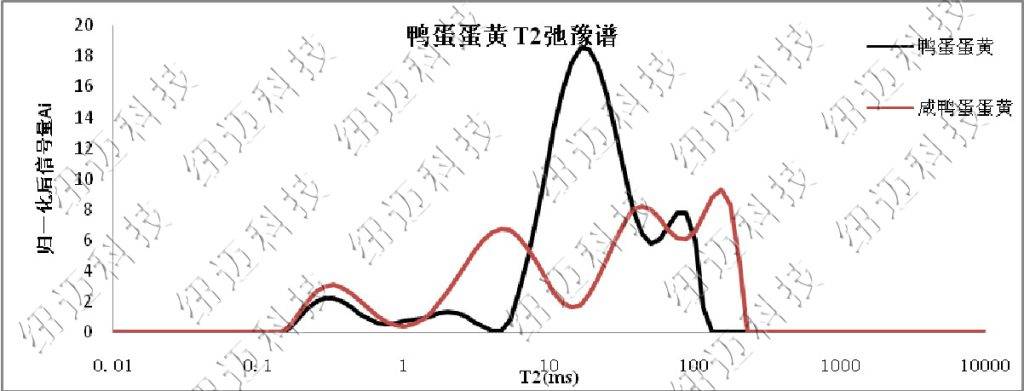 NMR T2 spectrum analysis clearly reveals the differences in lipid states between salted and regular duck egg yolks.