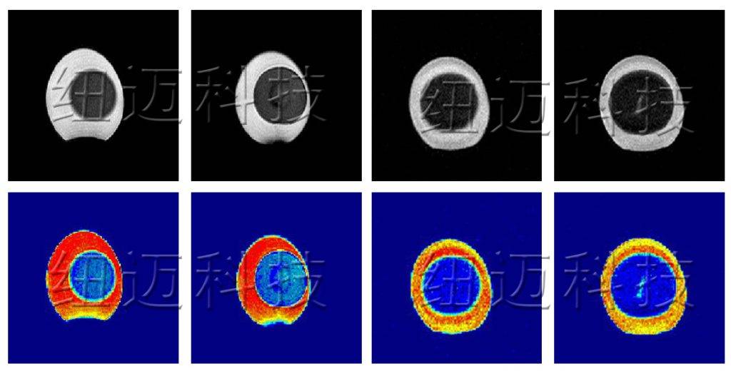 Both yolk types were analysed using MRI. Thanks to the non-invasive nature of NMR, the imaging was performed directly on intact duck eggs with a slice thickness of 4.9 mm.