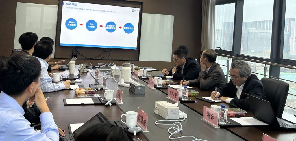Under the guidance of Mr. Yang Peiqiang, Chairman of New Mai Analytical, the leadership team toured the company’s showroom and gained a deep understanding of New Mai Analytical’s over 20 years of development. Chairman Yang provided a detailed introduction to the fruitful achievements the company has made through collaborations with scientific research clients and highlighted the company’s innovations and market expansion successes in the field of low-field nuclear magnetic resonance technology. Mr. Chen Xinwei and his team expressed high recognition of New Mai Analytical’s capabilities in the research, development, and production of high-end nuclear magnetic resonance analytical instruments. In terms of technical details, both sides engaged in a thorough discussion on how to better apply New Mai Analytical’s advanced technology to the chemical fiber industry to enhance the industry’s level of automation and market competitiveness.