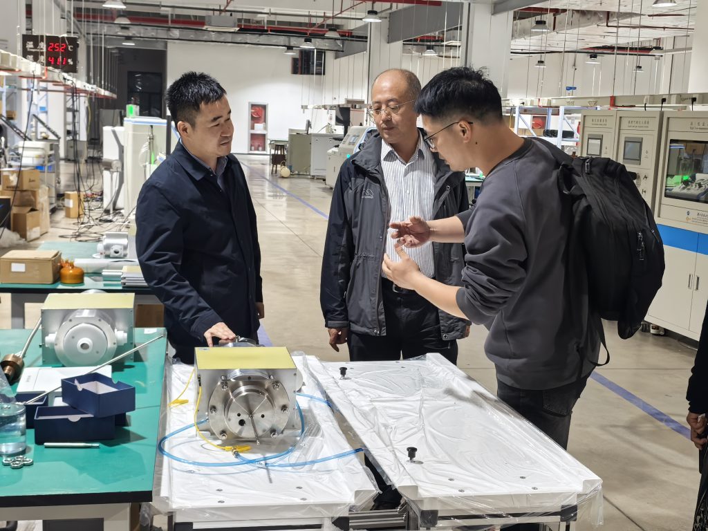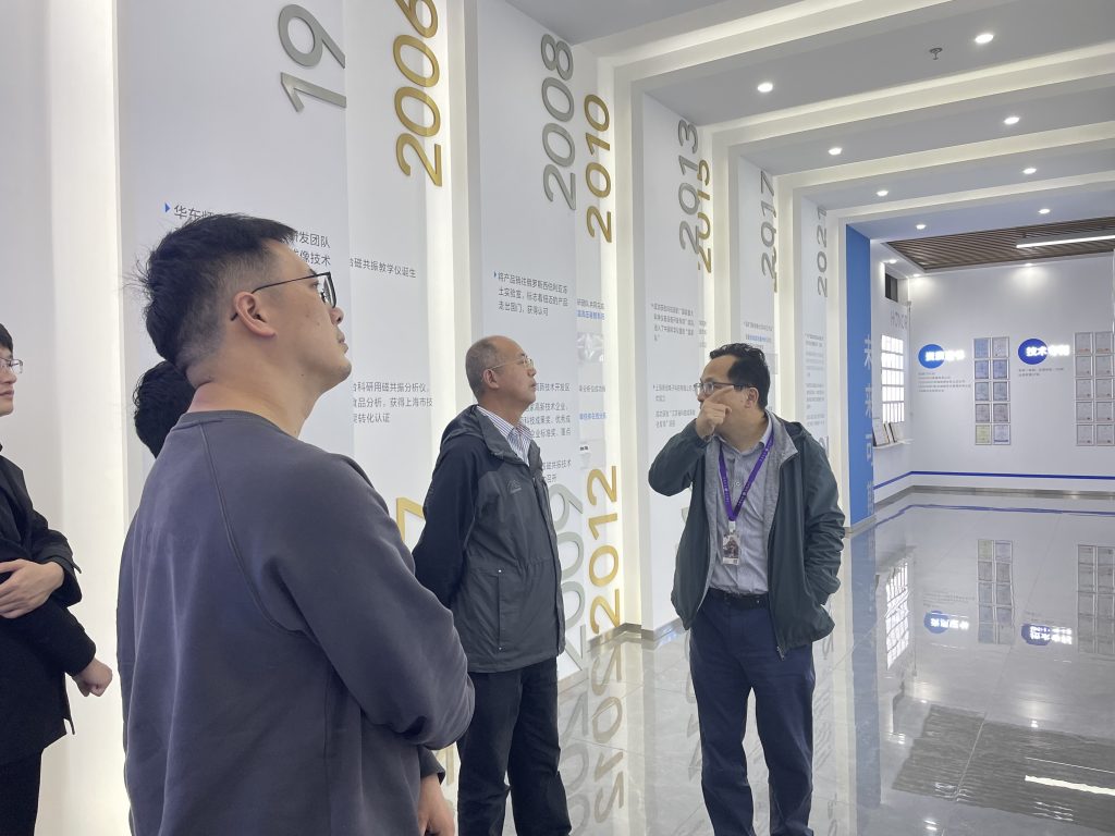 Under the guidance of Chairman Yang Peiqiang, the expert team visited the exhibition hall of Niumai Analysis. Chairman Yang elaborated on the company’s development over the past two decades, showcasing fruitful collaborations with research clients and highlighting the company’s innovations and market expansion achievements in the field of low-field nuclear magnetic resonance technology. Senior Expert Lu Yuzhou and his team highly recognized Niumai’s capabilities in the research, development, and production of high-end nuclear magnetic resonance analyzers and had in-depth discussions on the technical details with the Niumai team.